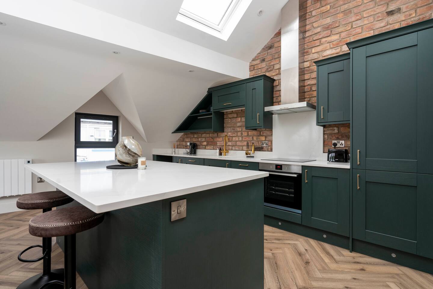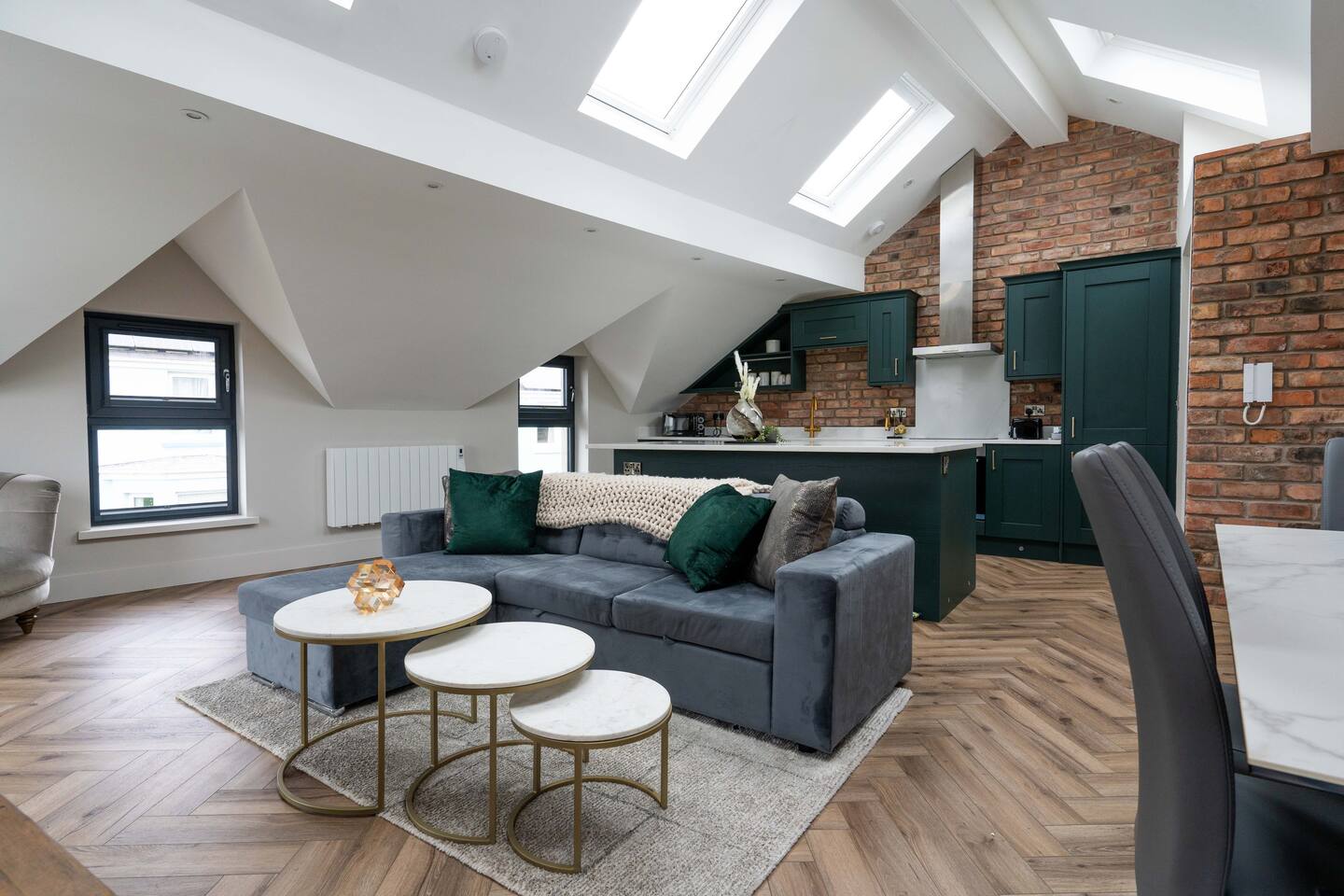 Experience modern luxury in our open-plan penthouse in the central heart of Portrush. Perfect for family vacations, golfers & professionals needing temporary accommodation. * Spacious, modern open-plan living area * Sleeps up to 8 guests comfortably * High-speed WiFi * Fully equipped kitchen * Skylights for natural light & airy ambiance * Luxurious furnishings & decor throughout Add my listing to your wish list by pressing ❤️ in the upper right corner