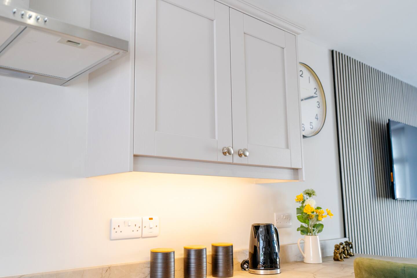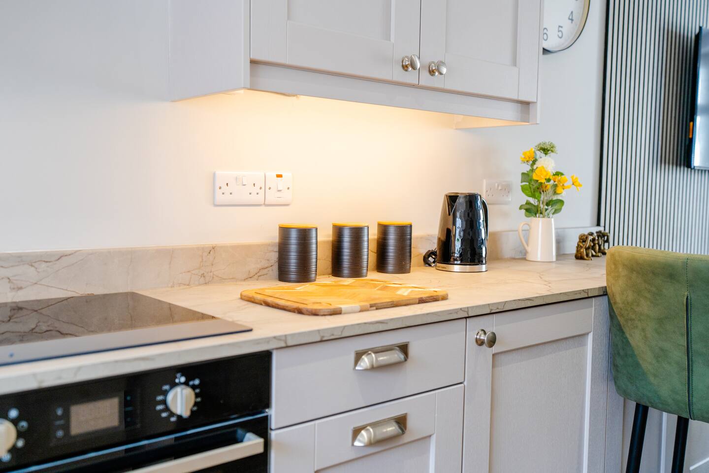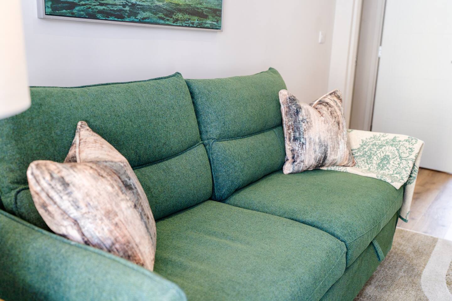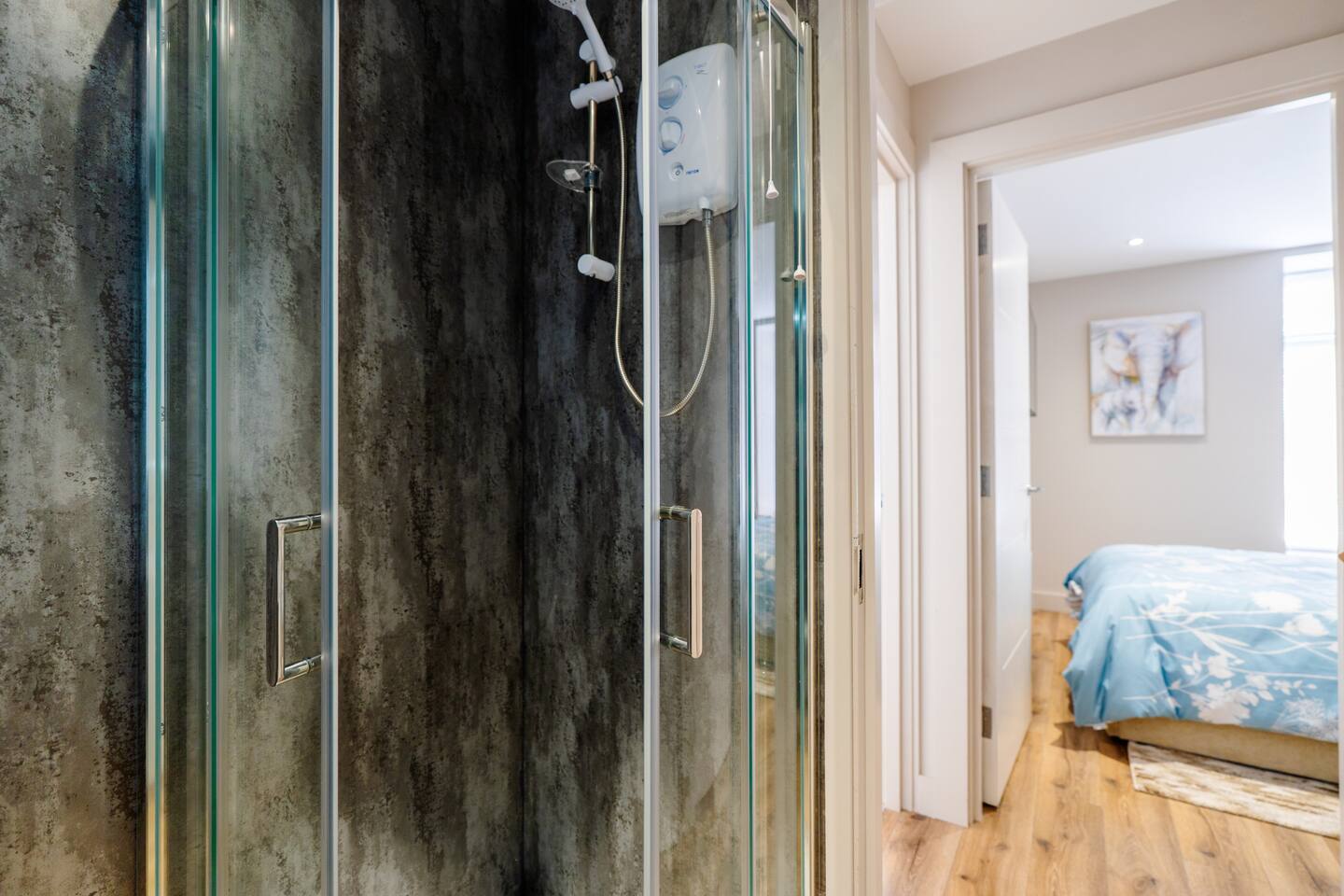 Welcome to your stylish retreat in the heart of Portrush! This beautifully designed first-floor studio apartment perfectly combines modern luxury with coastal charm, offering everything you need for an unforgettable stay on Northern Ireland's stunning Causeway Coast. Step into a thoughtfully designed open-plan studio featuring a comfortable king-size bed and premium sofa bed that easily accommodates up to 4 guests. The space showcases contemporary furnishings with coastal-inspired touches, including plush green seating, natural textures, and carefully curated artwork that reflects the area's maritime heritage. The stunning bathroom is a real highlight, featuring dramatic mood lighting, premium fixtures, and a spacious walk-in shower - perfect for unwinding after a day exploring the coast. Living & Dining: The bright living area offers comfortable seating for relaxation, while the fully equipped kitchenette includes everything needed for light meals and morning coffee. Large windows flood the space with natural light and create an airy, welcoming atmosphere. Modern Amenities: • High-speed WiFi throughout • Smart TV with streaming services • Full kitchen facilities (fridge, microwave, kettle, toaster) • Premium bedding and towels • Central heating Location Highlights: Perfectly positioned in central Portrush, you're just a few minutes from beautiful sandy beaches and the world-famous Royal Portrush Golf Club. The apartment puts you within easy walking distance of the town's best restaurants, traditional pubs, and local attractions, while serving as an ideal base for exploring the Giant's Causeway, Dunluce Castle, and the spectacular Causeway Coastal Route. Perfect for couples seeking a romantic getaway, friends planning a coastal adventure, or anyone wanting to experience the very best of Northern Ireland's Causeway Coast.