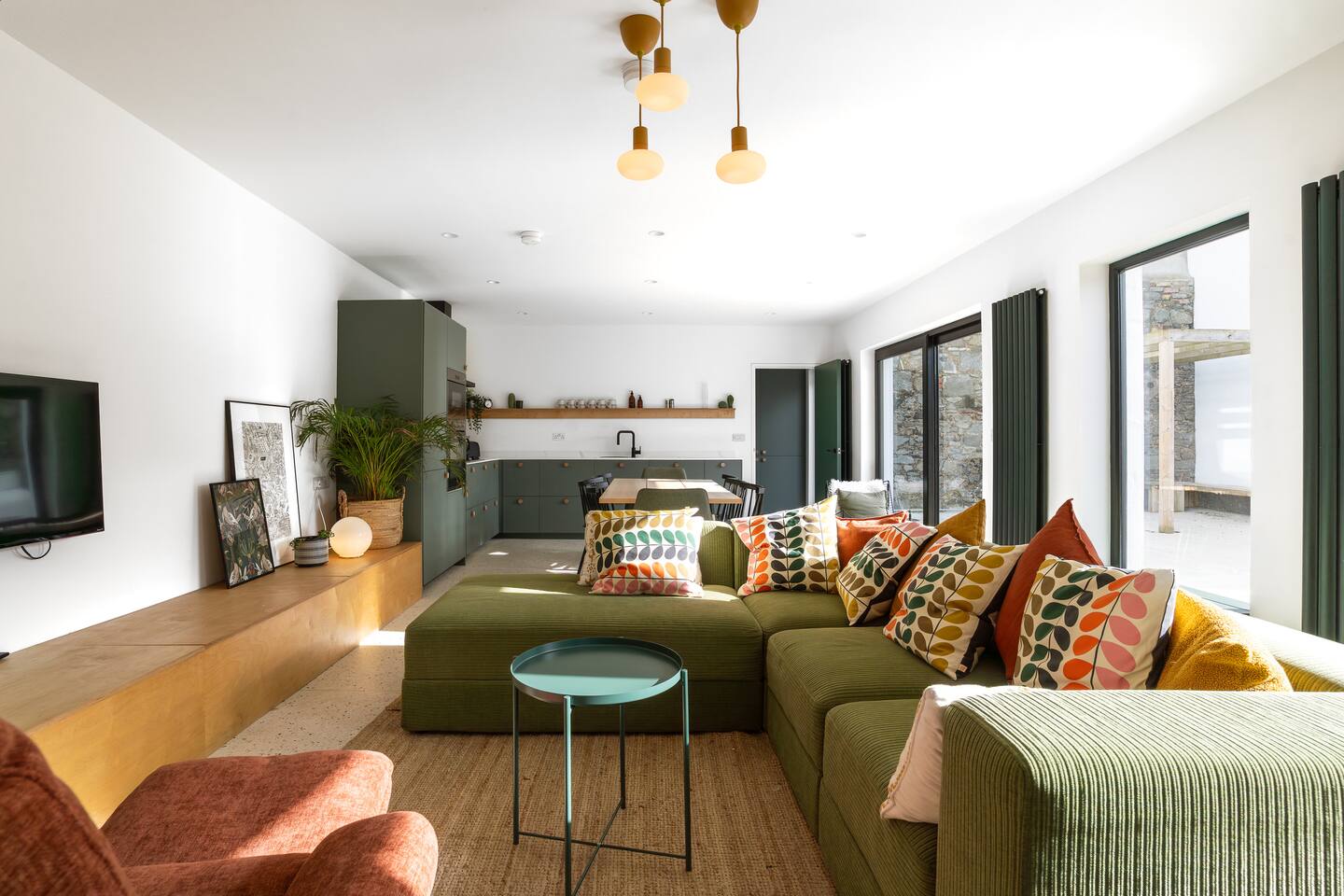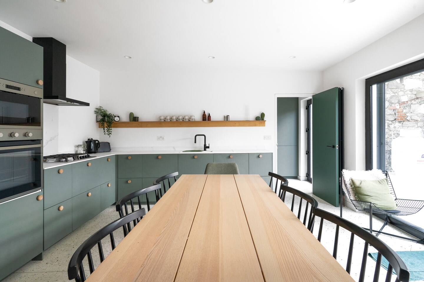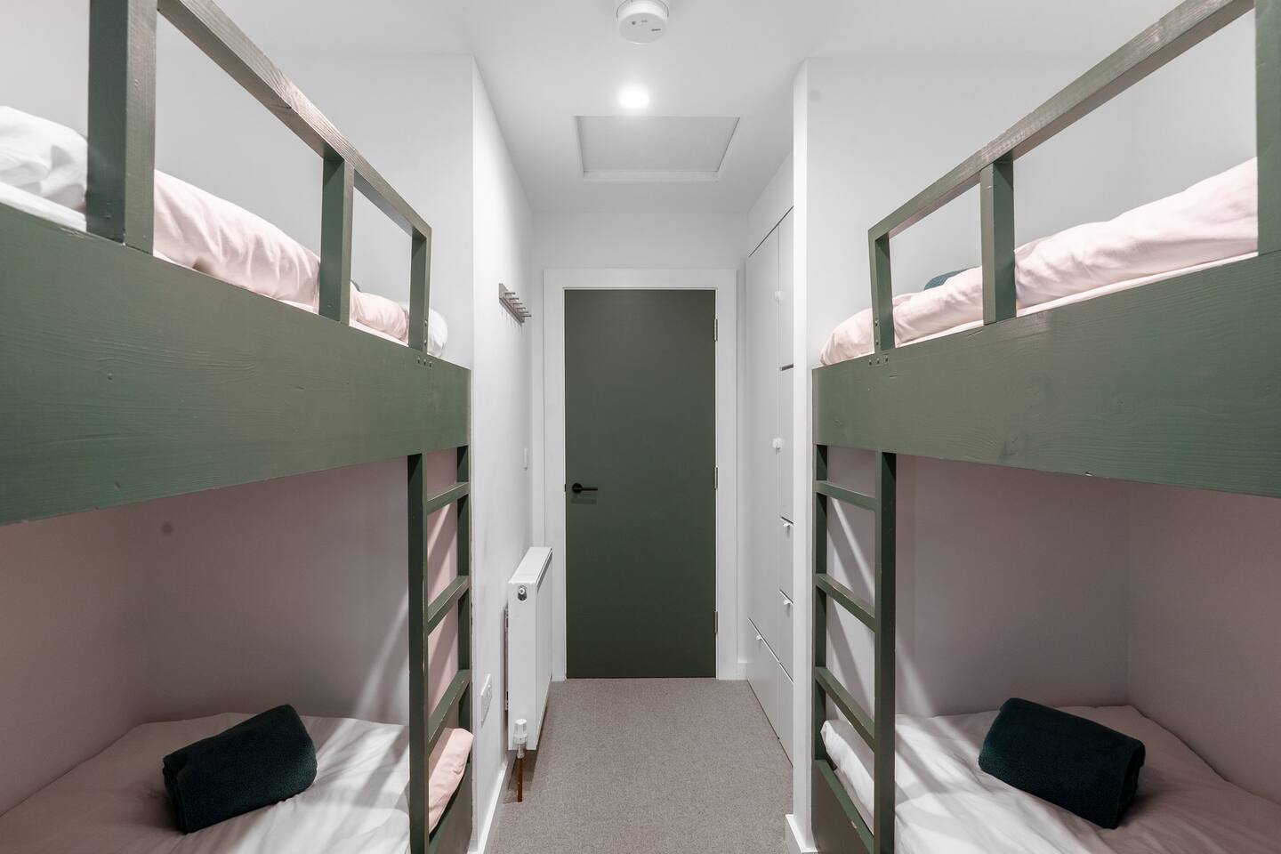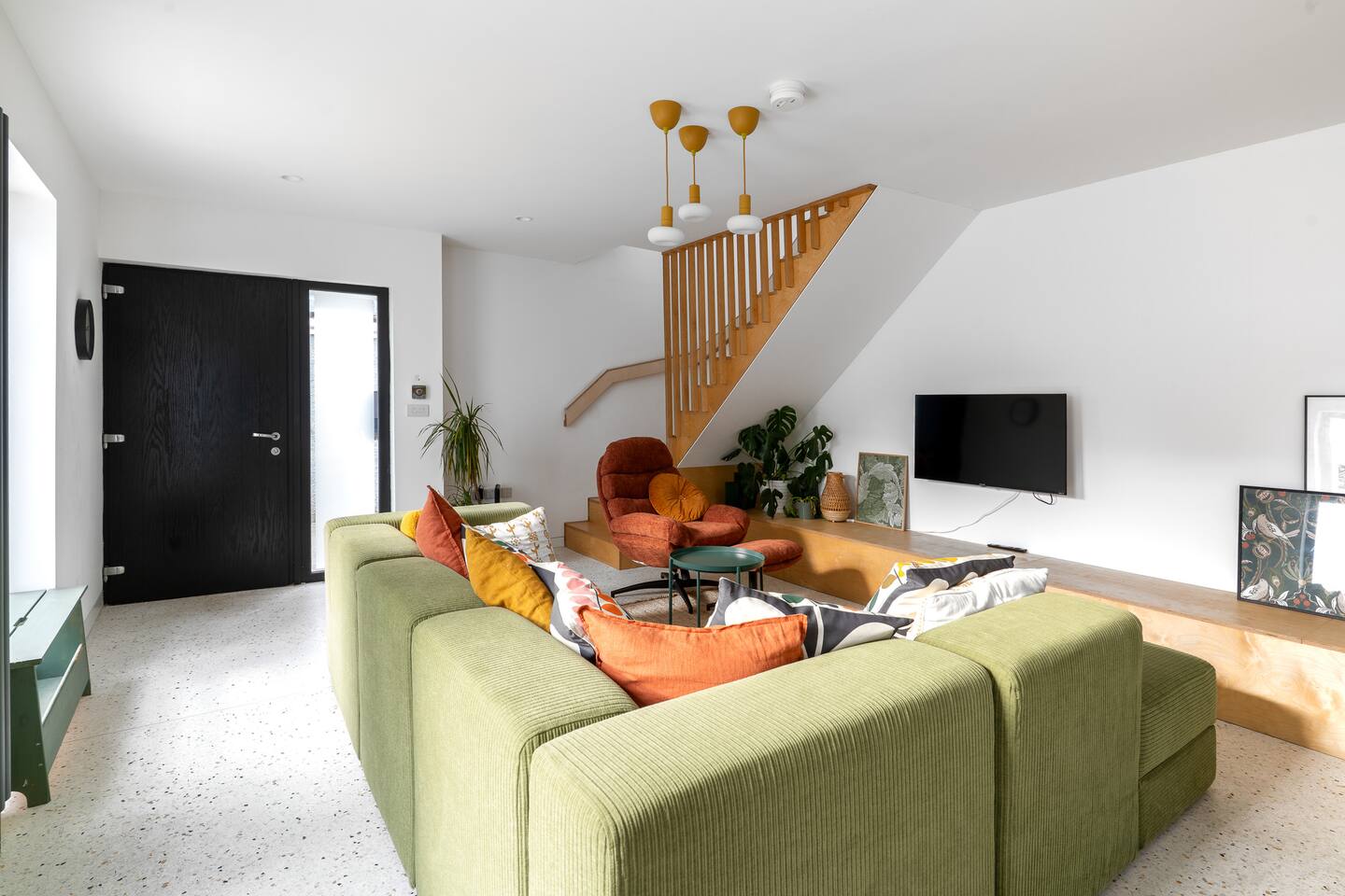 Designed for relaxed group stays, this contemporary Portrush home combines modern architecture with warm, comfortable interiors. The heart of the house is the spacious open-plan living area, where the kitchen, dining space and lounge flow together in one bright social hub. A large dining table comfortably seats the whole group, making it ideal for shared meals, long breakfasts, or planning the day’s adventures along the Causeway Coast. Floor-to-ceiling sliding glass doors run the length of the living space, filling the room with natural light and opening directly onto the private patio. On warmer days the doors can be opened to extend the living space outdoors. The lounge area centres around a generous sectional sofa - perfect for unwinding after a day at the beach, exploring the North Coast, or playing a round at one of the nearby championship golf courses. Upstairs, the home sleeps up to eight guests across three thoughtfully styled bedrooms. The main bedroom offers a calm and spacious retreat, while the additional rooms provide flexible sleeping arrangements for families or groups travelling together, including a dedicated bunk room. Two contemporary bathrooms feature bold tiled finishes and modern fittings, including a walk-in rainfall shower and a full bath - ideal for relaxing after a day exploring. Throughout the home, clean architectural lines, warm natural materials and carefully chosen finishes create a space that feels both modern and welcoming. Whether you’re visiting for the beaches, golf, or the spectacular Causeway Coast scenery, this stylish Portrush home provides a comfortable and memorable base for your stay. Designed For • Family trips to the Causeway Coast – spacious living areas, flexible sleeping and room to relax together. • Golf weekends in Portrush – ideal for groups visiting the famous local courses. • Coastal getaways with friends – a large dining space and open-plan layout made for social evenings. • Exploring the North Coast – a comfortable base for beaches, coastal walks and local restaurants. • The property also includes EV charging, making it convenient for guests travelling along the Causeway Coast with electric vehicles.