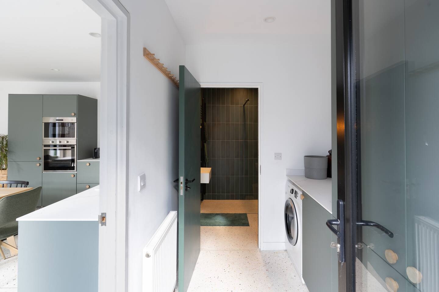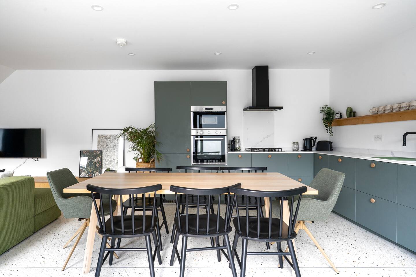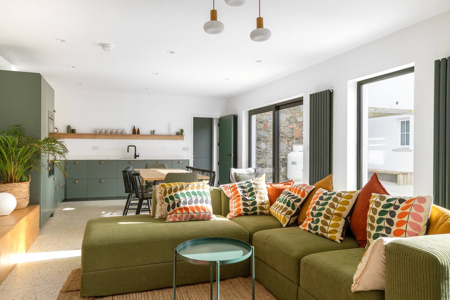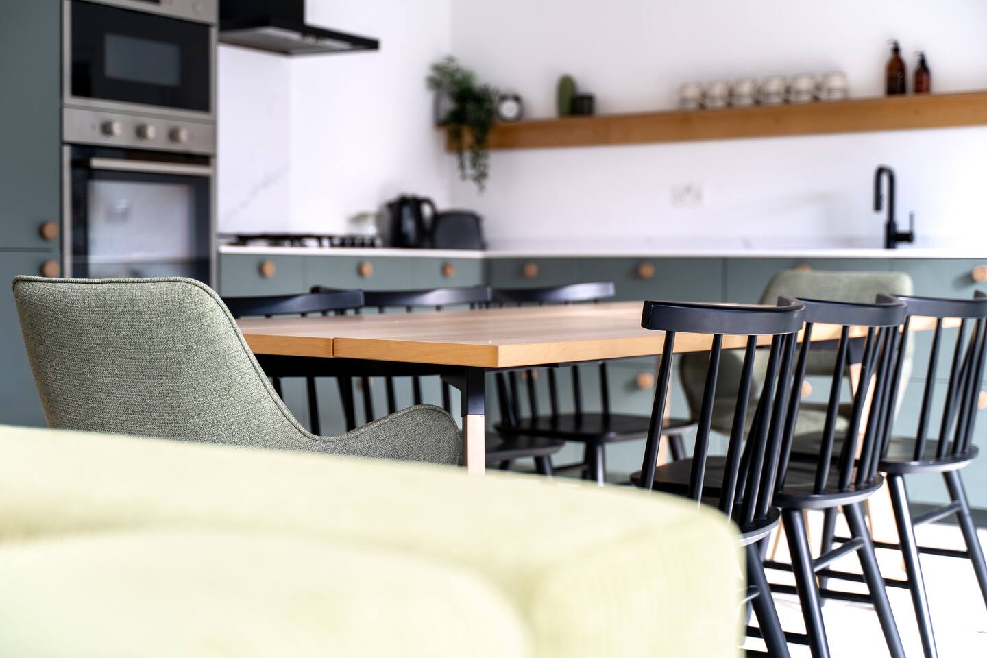 Designed for relaxed group stays, this contemporary Portrush home combines modern architecture with warm, comfortable interiors. The heart of the house is the spacious open-plan living area, where the kitchen, dining space and lounge flow together in one bright social hub. A large dining table comfortably seats the whole group, making it ideal for shared meals, long breakfasts, or planning the day’s adventures along the Causeway Coast. Floor-to-ceiling sliding glass doors run the length of the living space, filling the room with natural light and opening directly onto the private patio. On warmer days the doors can be opened to extend the living space outdoors. The lounge area centres around a generous sectional sofa - perfect for unwinding after a day at the beach, exploring the North Coast, or playing a round at one of the nearby championship golf courses. Upstairs, the home sleeps up to eight guests across three thoughtfully styled bedrooms. The main bedroom offers a calm and spacious retreat, while the additional rooms provide flexible sleeping arrangements for families or groups travelling together, including a dedicated bunk room. Two contemporary bathrooms feature bold tiled finishes and modern fittings, including a walk-in rainfall shower and a full bath - ideal for relaxing after a day exploring. Throughout the home, clean architectural lines, warm natural materials and carefully chosen finishes create a space that feels both modern and welcoming. Whether you’re visiting for the beaches, golf, or the spectacular Causeway Coast scenery, this stylish Portrush home provides a comfortable and memorable base for your stay. Designed For • Family trips to the Causeway Coast – spacious living areas, flexible sleeping and room to relax together. • Golf weekends in Portrush – ideal for groups visiting the famous local courses. • Coastal getaways with friends – a large dining space and open-plan layout made for social evenings. • Exploring the North Coast – a comfortable base for beaches, coastal walks and local restaurants. • The property also includes EV charging, making it convenient for guests travelling along the Causeway Coast with electric vehicles.