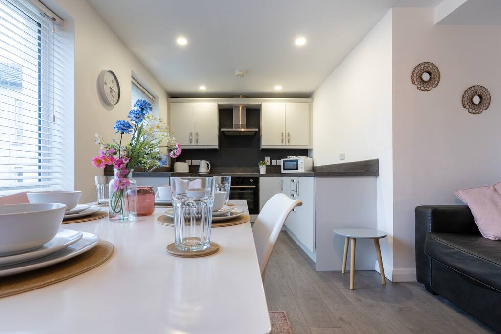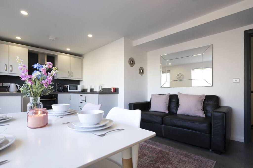 Welcome to our modern 2-bed duplex apartment in the very heart of Portrush — the perfect base to explore the stunning North Coast. Ideal for 4 - can sleep 6. Just 1 minute from the train station, 2 minutes from Curry’s Amusements (formerly Barrys), and 5 minutes from Royal Portrush Golf Club, you couldn’t ask for a better location. Our apartment is bright, spacious, and ideal for couples, families or small groups looking to relax by the sea or tee off at world-class golf courses.