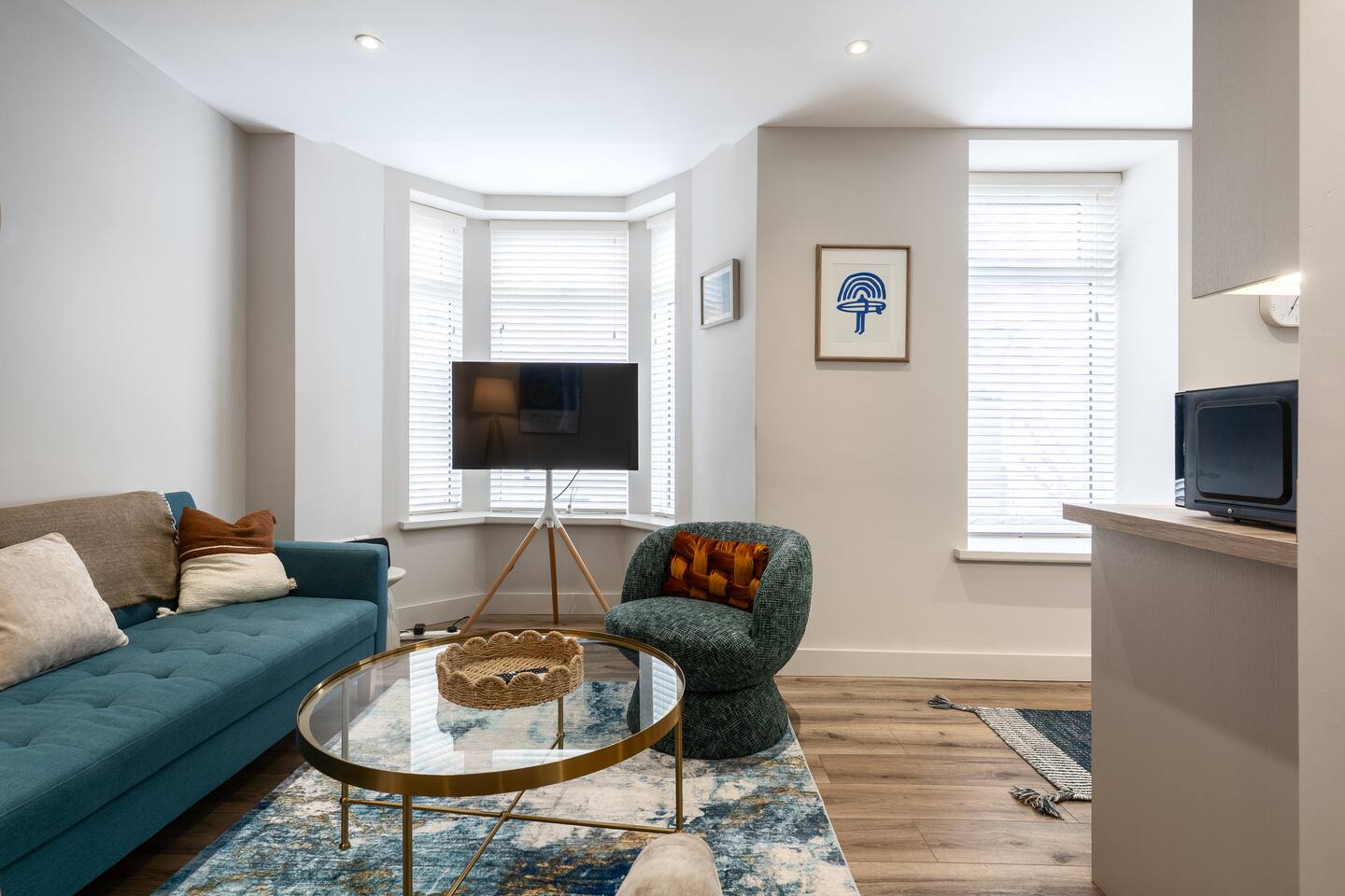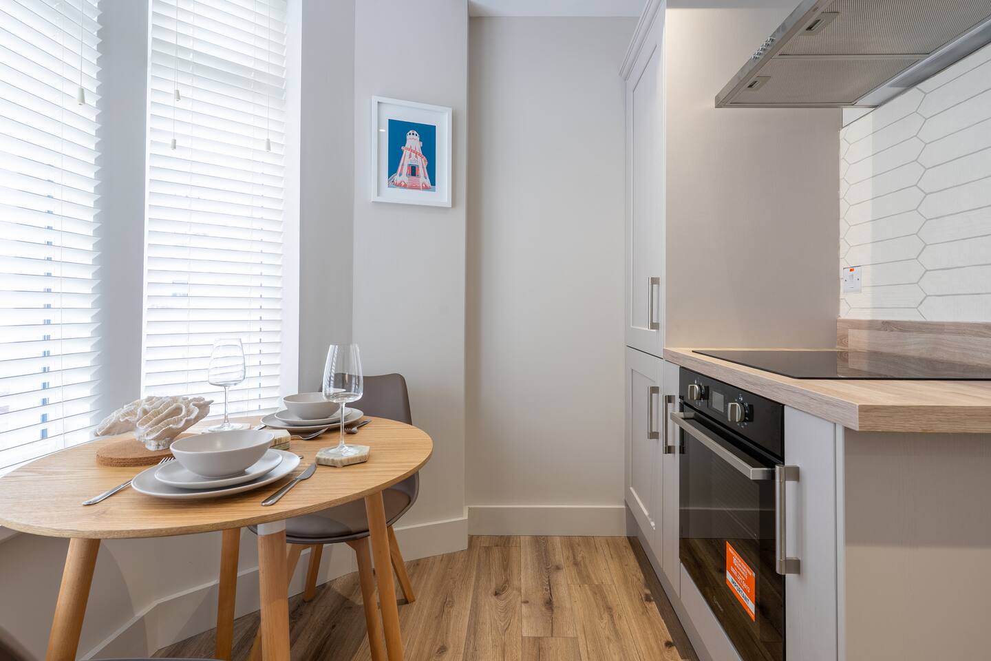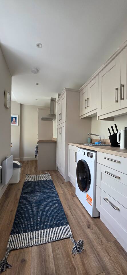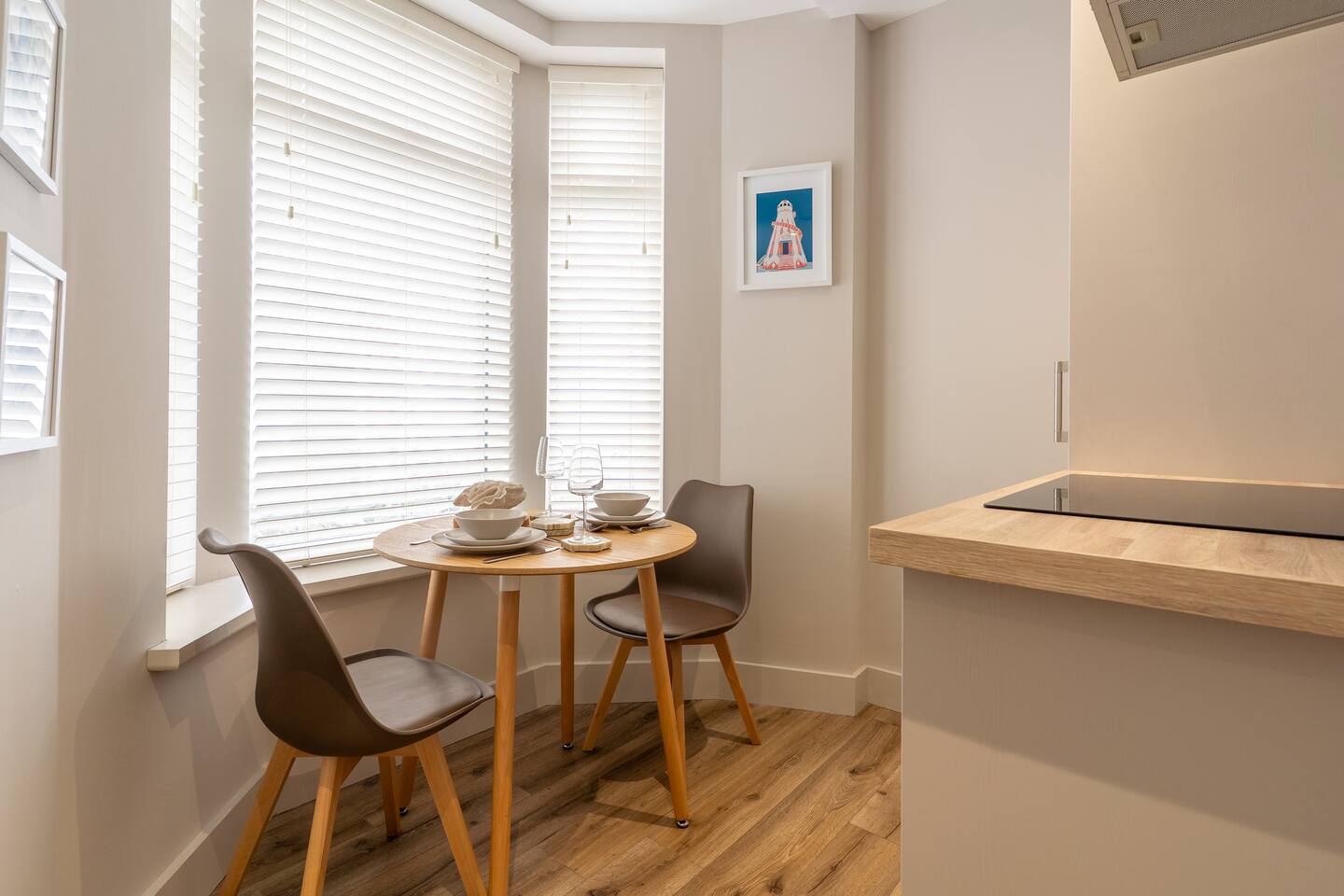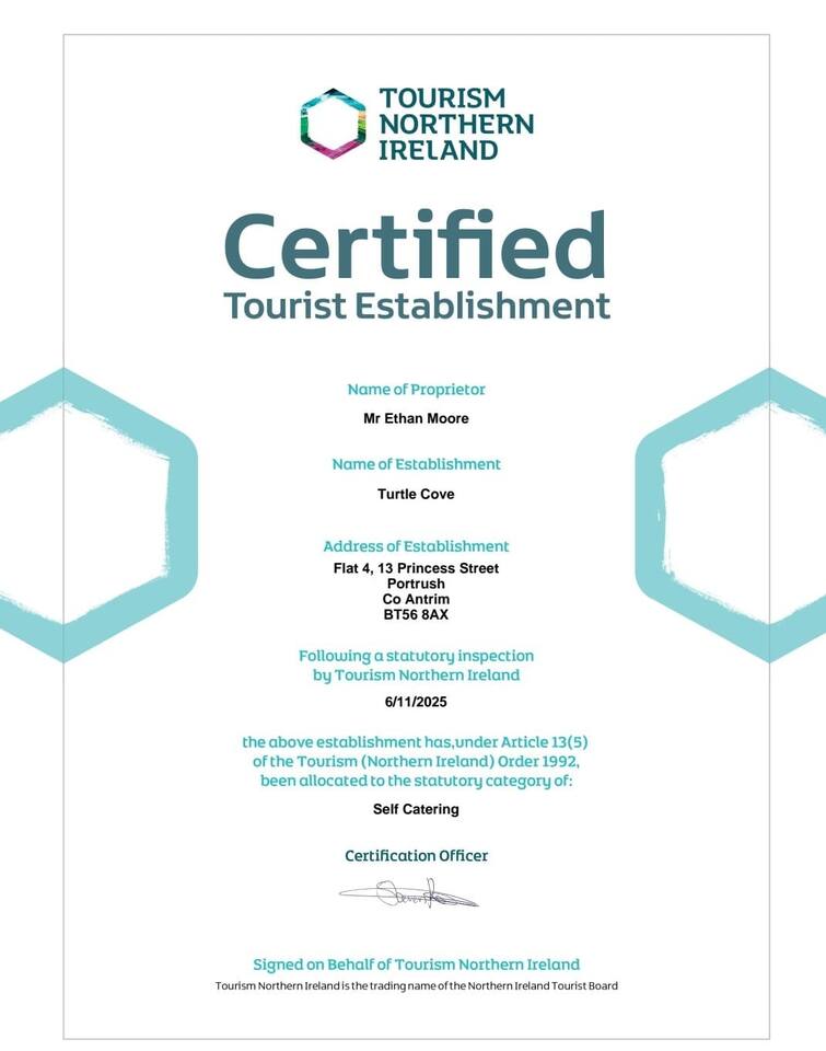 Turtle Cove is a bright and comfortable two-bedroom apartment located just seconds from Portrush’s main street and only a short 10-minute walk to East Strand Beach. With partial sea views, free on street parking, and easy self check-in, it offers a relaxed and convenient base for exploring the Causeway Coast. Inside, the apartment features a welcoming open-plan living, dining and kitchen area, creating a sociable space to unwind after a day at the beach or exploring the coastline. Large windows bring in plenty of natural light and offer glimpses of the ocean beyond the town. The apartment comfortably sleeps up to four guests across two double bedrooms, making it well suited for couples travelling together, small families, or golf trips to the nearby courses. The kitchen is fully equipped for preparing meals during your stay, while the living area provides a comfortable place to relax in the evening. Thanks to its central Portrush location, guests can easily walk to the town’s cafés, restaurants, shops, harbour, and seaside attractions. East Strand’s wide sandy beach is just minutes away, and the apartment also makes an excellent base for visiting the wider Causeway Coast, including scenic coastal drives, famous golf courses, and iconic landmarks. For convenience, the apartment offers self check-in via keypad and free parking, allowing you to arrive and settle in with ease. Whether you're visiting for a beach break, a golf trip, or a coastal getaway, Turtle Cove provides a comfortable and well-located stay in one of Northern Ireland’s most loved seaside towns. Good to Know The apartment is accessed via one flight of stairs, and the ceiling height lowers slightly near the apartment entrance door, so taller guests may wish to take care when entering. Dog-friendly – we welcome one well-behaved dog per stay (£15 per night). What You’ll Enjoy • Central Portrush location • Partial ocean views from living space • 10-minute walk to East Strand Beach • Open-plan living and dining area • Two double bedrooms • Fully equipped kitchen • Free on street parking • Self check-in with keypad Key Highlights • Seconds from Portrush Main Street • 10-minute walk to East Strand Beach • Partial ocean views • Sleeps 4 • Two double bedrooms • Free on street parking • Self check-in keypad • Open-plan living space • Ideal base for Causeway Coast exploring • Walkable restaurants and cafes What Guests Love • Extremely central location • Easy self check-in • Walkable beach access • Comfortable beds • Relaxed open living space