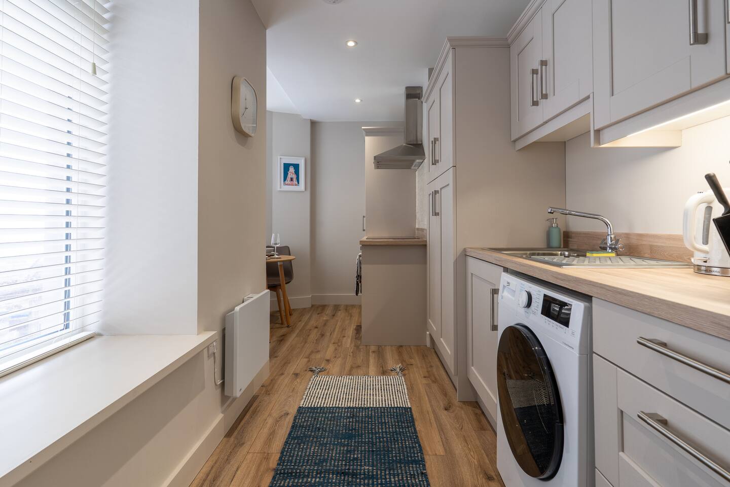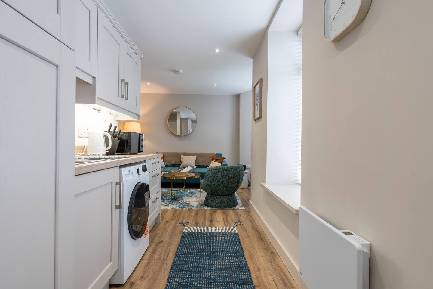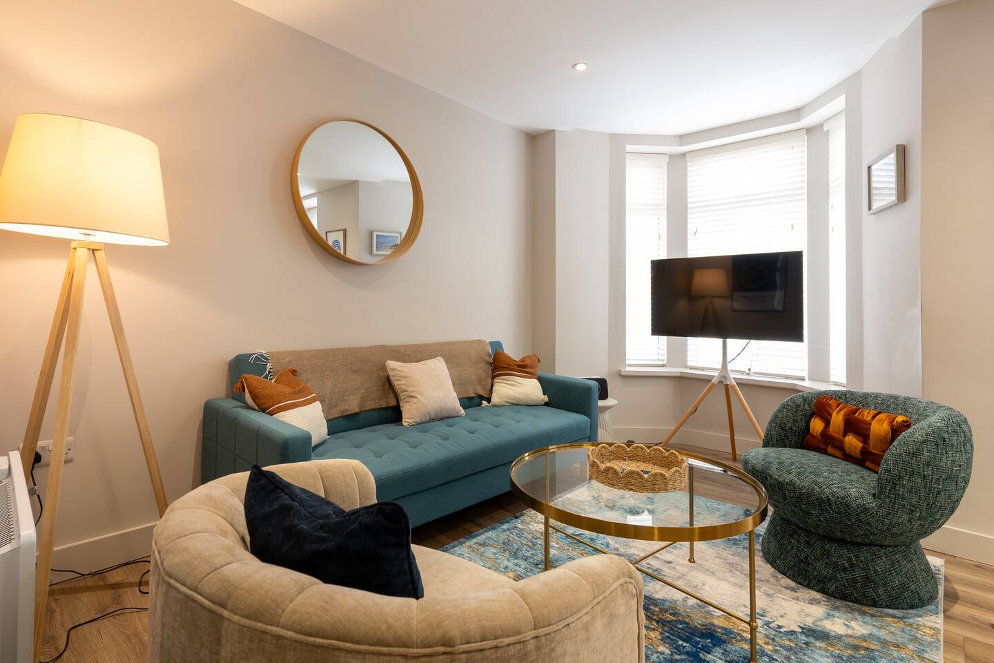 Turtle Cove is a bright and comfortable two-bedroom apartment located just seconds from Portrush’s main street and only a short 10-minute walk to East Strand Beach. With partial sea views, free on street parking, and easy self check-in, it offers a relaxed and convenient base for exploring the Causeway Coast. Inside, the apartment features a welcoming open-plan living, dining and kitchen area, creating a sociable space to unwind after a day at the beach or exploring the coastline. Large windows bring in plenty of natural light and offer glimpses of the ocean beyond the town. The apartment comfortably sleeps up to four guests across two double bedrooms, making it well suited for couples travelling together, small families, or golf trips to the nearby courses. The kitchen is fully equipped for preparing meals during your stay, while the living area provides a comfortable place to relax in the evening. Thanks to its central Portrush location, guests can easily walk to the town’s cafés, restaurants, shops, harbour, and seaside attractions. East Strand’s wide sandy beach is just minutes away, and the apartment also makes an excellent base for visiting the wider Causeway Coast, including scenic coastal drives, famous golf courses, and iconic landmarks. For convenience, the apartment offers self check-in via keypad and free parking, allowing you to arrive and settle in with ease. Whether you're visiting for a beach break, a golf trip, or a coastal getaway, Turtle Cove provides a comfortable and well-located stay in one of Northern Ireland’s most loved seaside towns. Good to Know The apartment is accessed via one flight of stairs, and the ceiling height lowers slightly near the apartment entrance door, so taller guests may wish to take care when entering. Dog-friendly – we welcome one well-behaved dog per stay (£15 per night). What You’ll Enjoy • Central Portrush location • Partial ocean views from living space • 10-minute walk to East Strand Beach • Open-plan living and dining area • Two double bedrooms • Fully equipped kitchen • Free on street parking • Self check-in with keypad Key Highlights • Seconds from Portrush Main Street • 10-minute walk to East Strand Beach • Partial ocean views • Sleeps 4 • Two double bedrooms • Free on street parking • Self check-in keypad • Open-plan living space • Ideal base for Causeway Coast exploring • Walkable restaurants and cafes What Guests Love • Extremely central location • Easy self check-in • Walkable beach access • Comfortable beds • Relaxed open living space
