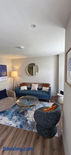 Stay in the heart of Portrush, just seconds from the town’s main street and a 10-minute walk to East Strand Beach. This bright 2-bed apartment offers partial sea views, free parking, and easy self check-in. With two comfortable double bedrooms and an open-plan living space, it’s an ideal base for couples, families, golfers, and Causeway Coast explorers looking to enjoy beaches, restaurants, and coastal walks right on the doorstep.